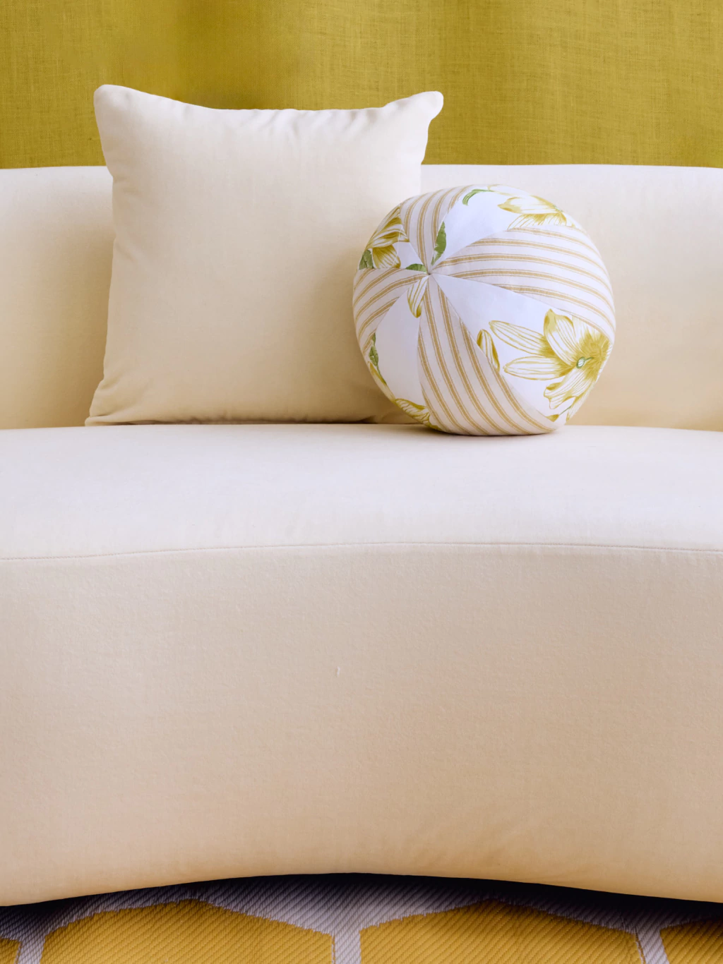 Almohadón tipo pelota de tusor y shablon.
