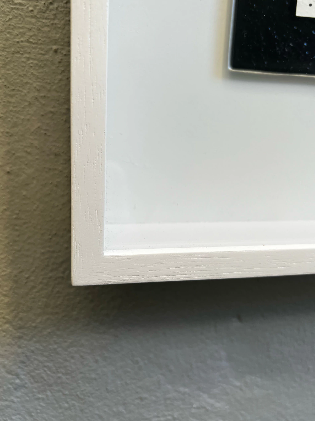 Cuadro collage con vidrio termomoldeado y papel calado y pintado realizado por las artistas Victoria Boné y Natasha Vazquez.