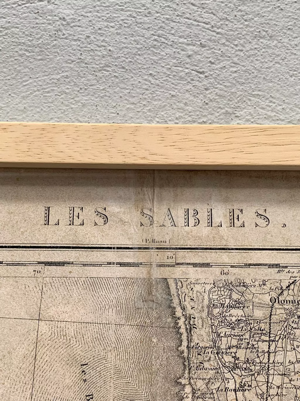 Cuadro con fotografía de mapas con marco de madera color natural.