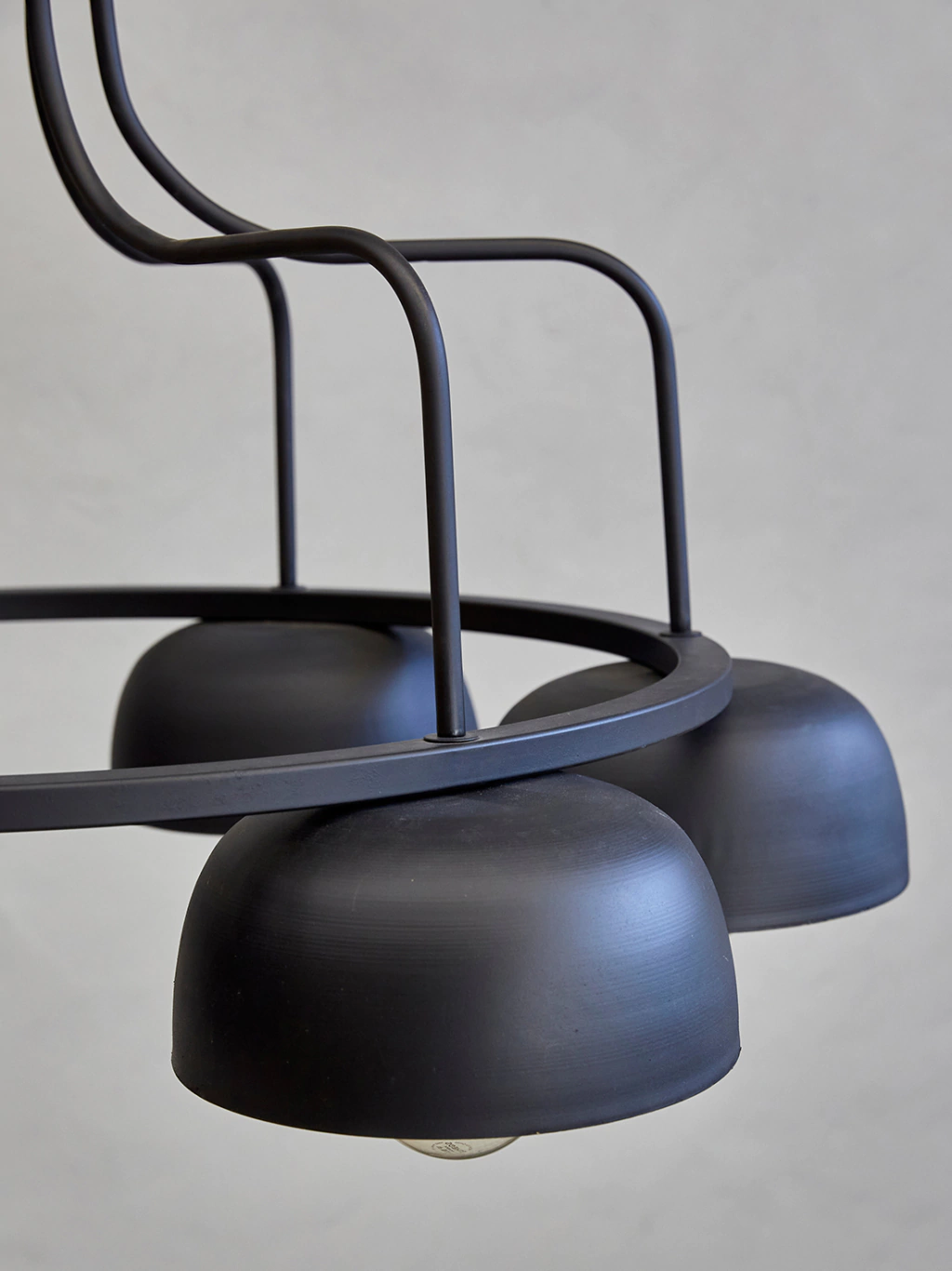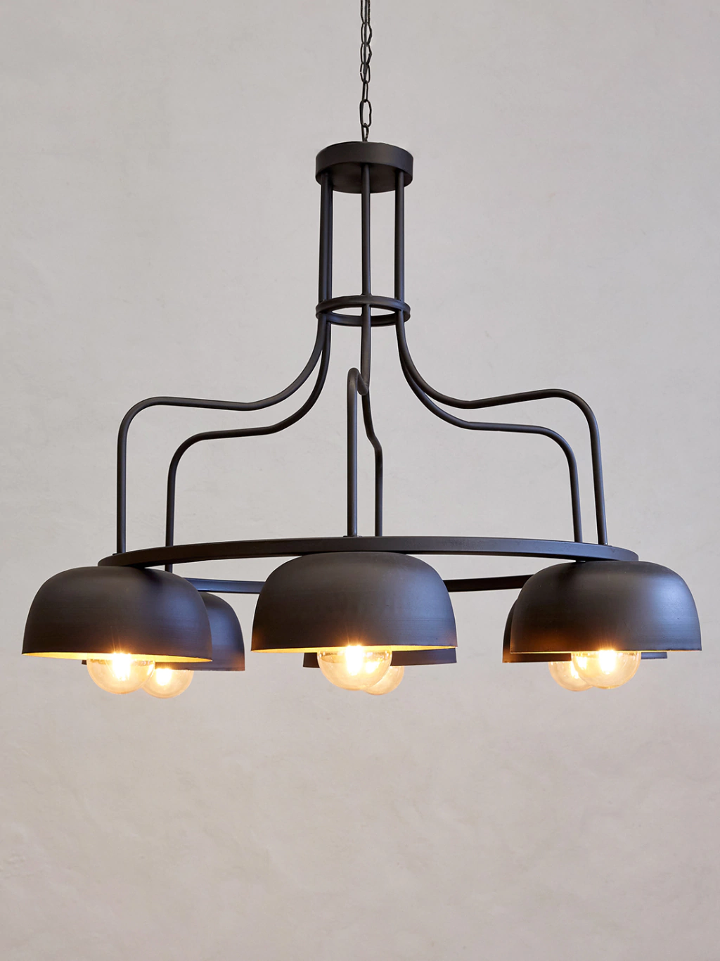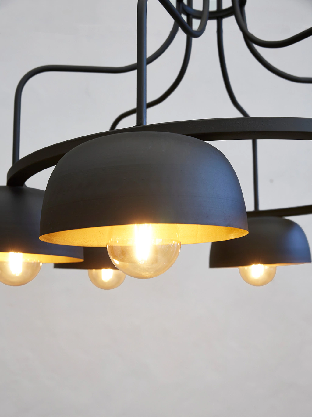 Lámpara de colgar de hierro con 6 luces. También viene la lámpara Jazz recta.