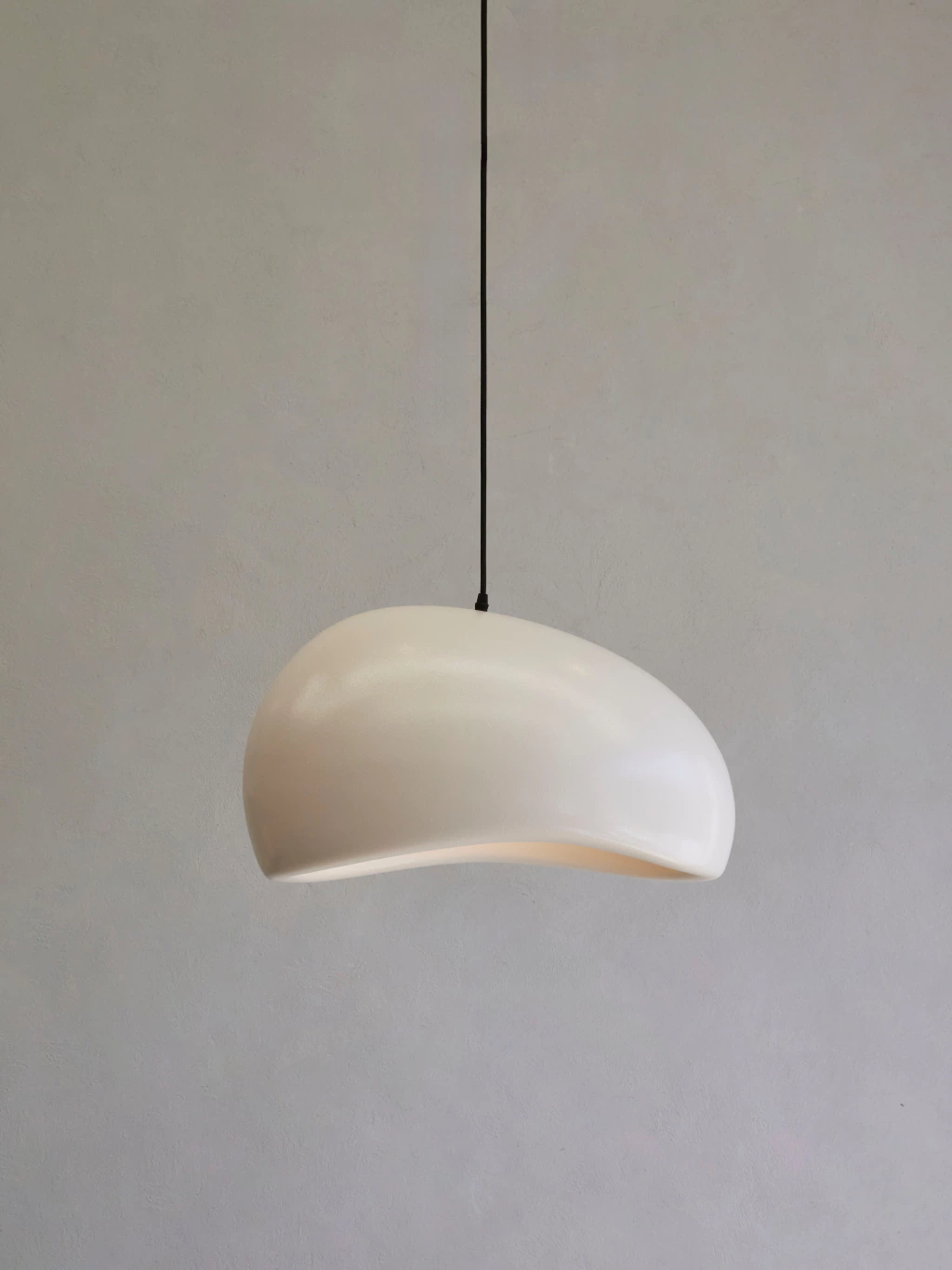 Lámpara de colgar con cuerpo en resina y fibra de vidrio color white off con portalamparas E27.