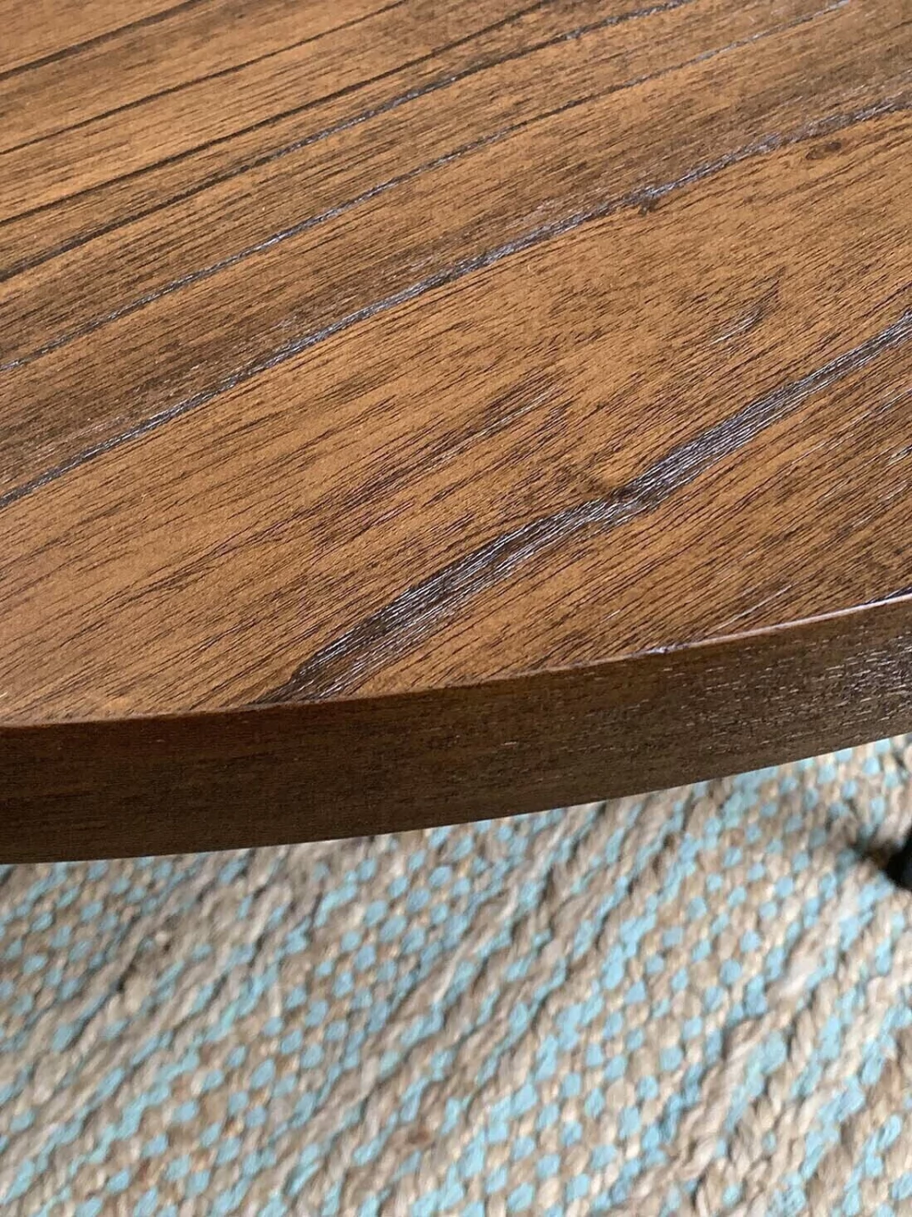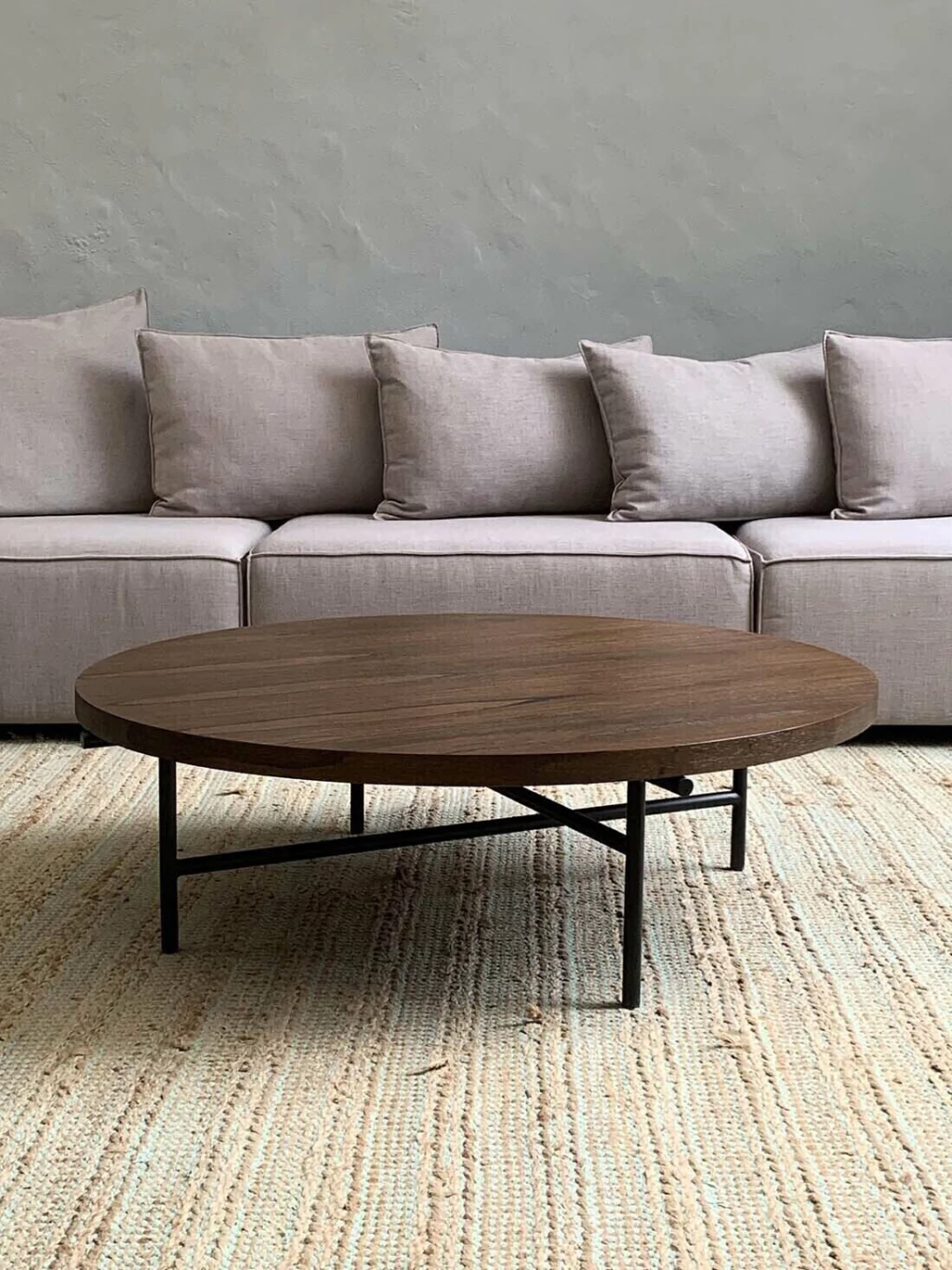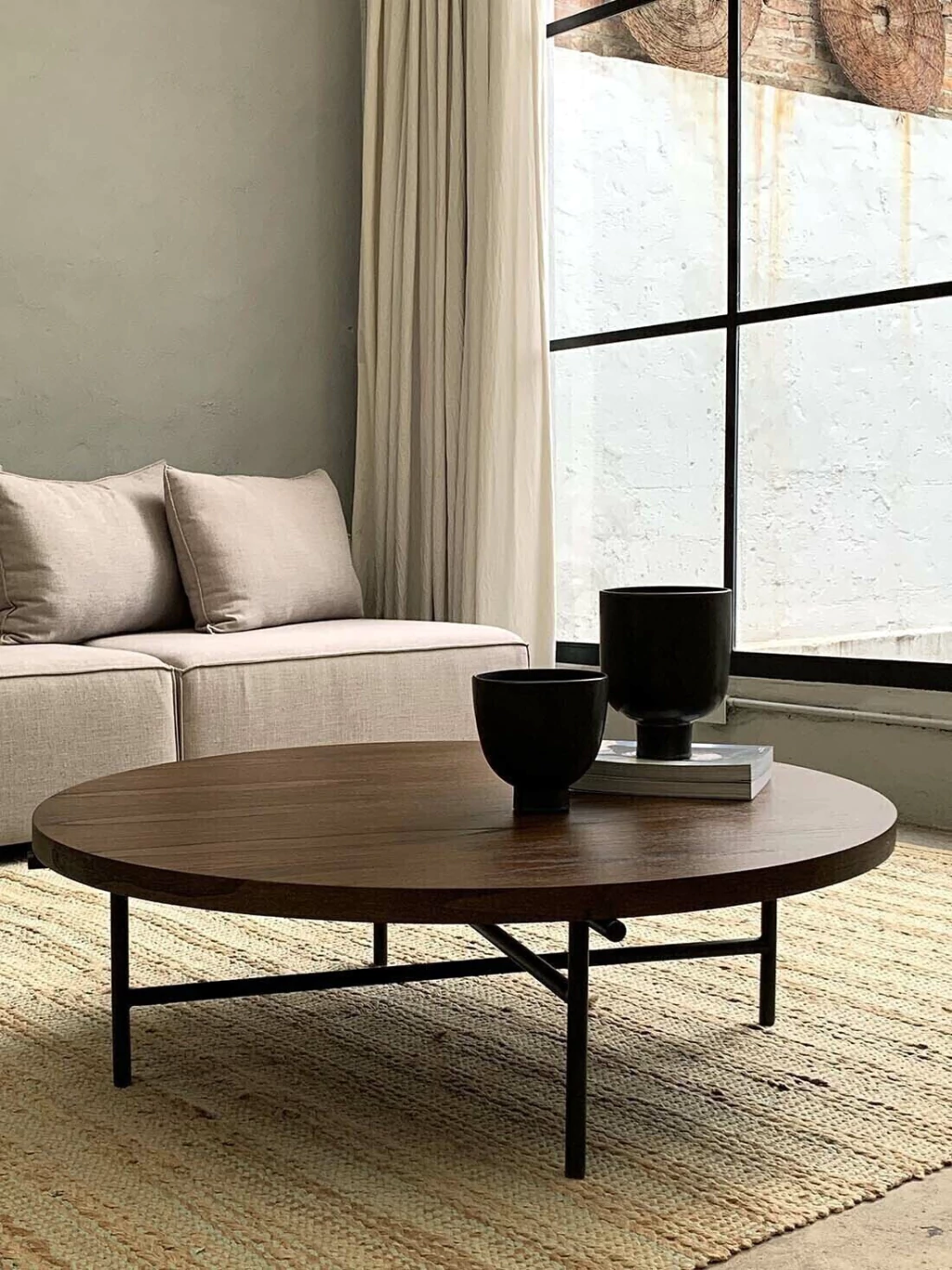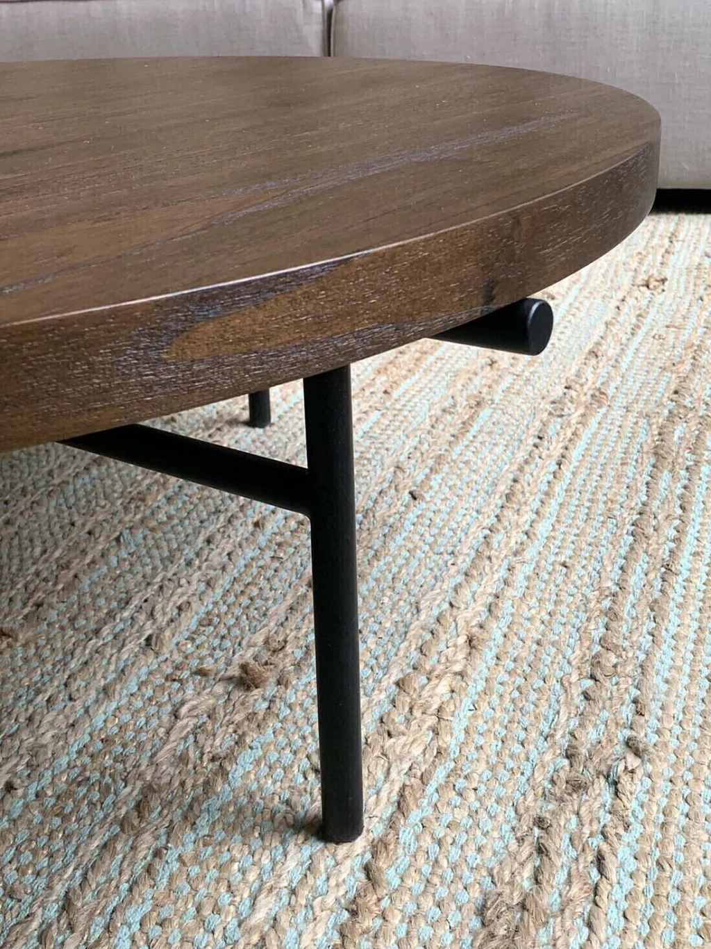 Mesa ratona de madera con base de hierro pintada epoxy metalizado.