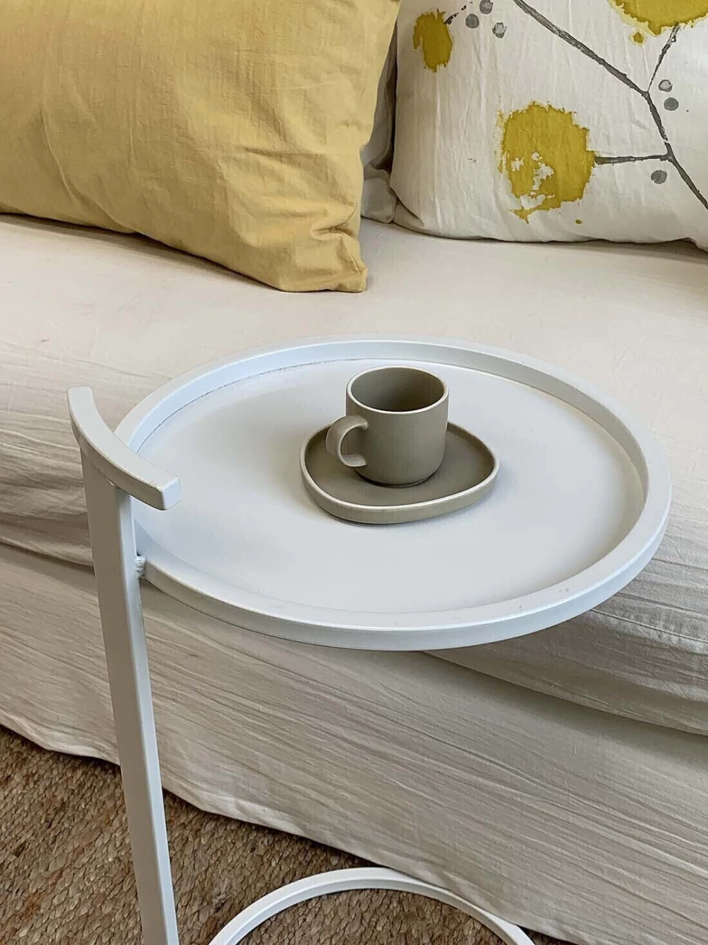 Mesa de arrime en hierro pintado al horno color blanca. También viene en color negro y dorado.