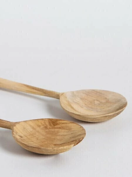 Estos cubiertos están fabricados a mano en madera de teca y pueden presentar algunas irregularidades propias del material. No son considerados falla