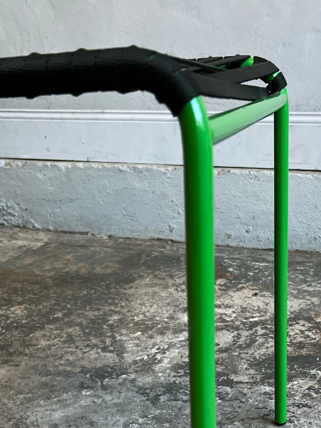 Set de 4 sillas verdes para uso interior y exterior. Apilable y súper liviana. Asiento y respaldo con tejido artesanal en cintas de polímeros con protección UV. Estructura metálica esmaltada en polvo polyester.